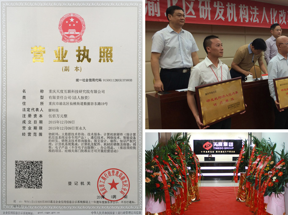 重慶天度互聯(lián)科技研究院(以下簡稱“天度研究院”)于2015年12月正式掛牌成立,這是重慶天度網(wǎng)絡(luò)信息技術(shù)有限公司作為重慶市渝北區(qū)研發(fā)機(jī)構(gòu)法人化試點(diǎn)單位的重要舉措。天度研究院作為集團(tuán)全資成立的獨(dú)立研發(fā)基地,主要以大數(shù)據(jù)、物聯(lián)網(wǎng)、智能硬件、網(wǎng)絡(luò)技術(shù)、電子商務(wù)的研發(fā)和研究為主,并將成立龐大的技術(shù)研發(fā)和產(chǎn)業(yè)研究團(tuán)隊,為集團(tuán)的發(fā)展提供重要技術(shù)支撐。