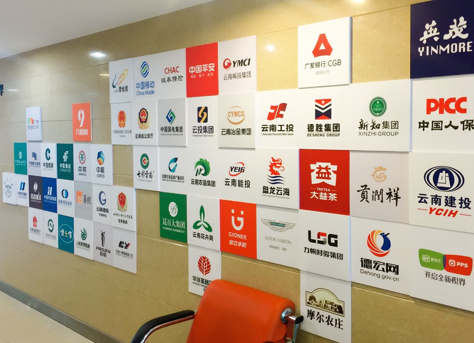 對面就是集團12年以來合作過的一部分企業的logo小拼圖展示。只有嚴謹的工作態度,細致到近乎苛刻的工作精神,才是集團發展的動力和依靠,也正是因為這樣的態度和精神,培養了大家習慣站在用戶角度思考需求和開發程序,從而讓集團在12年的發展歷程中不斷收獲到了更多的合作伙伴。