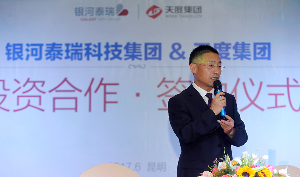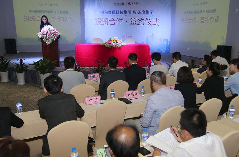 2017年6月1日,銀河泰瑞科技集團與天度集團在銀河科技園就“現代農業+互聯網服務平臺”項目簽訂投資合作協議,雙方將共同成立公司運營該項目,合力打造云南省高原特色農業新的發展模式?,F代農業+互聯網服務平臺是在與淘寶中國特色云南館合作背景下,依托于銀河泰瑞科技集團在農業科技、農業金融和農產品流通領域的優勢資源,應用物聯網、云計算、大數據、移動互聯等現代信息技術,推動農業全產業鏈改造升級,幫助傳統農業企業能夠去實現轉型升級,產業結構調整的農業產業互聯網服務平臺。