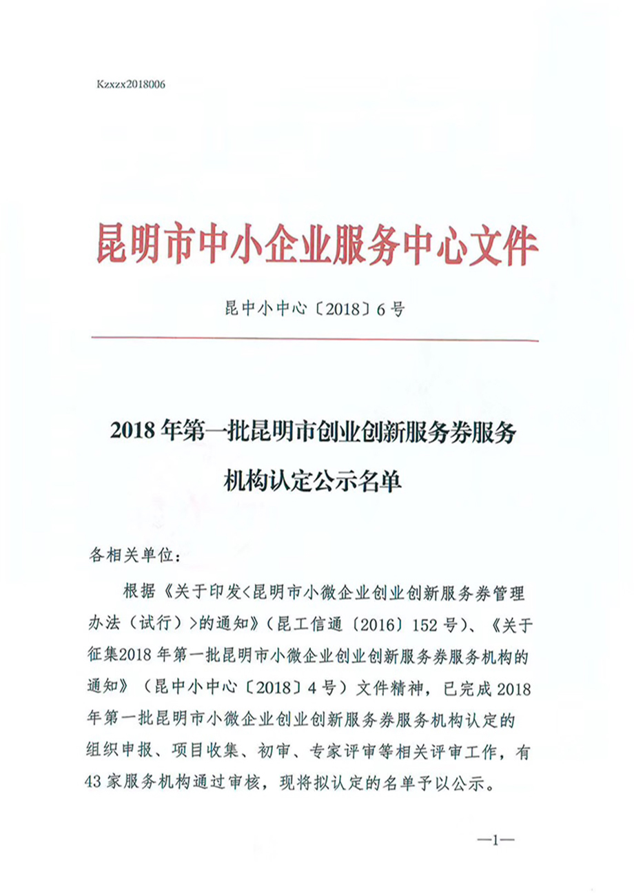 根據(jù)昆明市工業(yè)和信息化委員會 昆明市財政局《關于印發(fā)昆明市小微企業(yè)創(chuàng)業(yè)創(chuàng)新服務券管理辦法(試行)的通知》(昆工信通〔2016〕152號)(以下簡稱“管理辦法”)規(guī)定,為順利完成2018年昆明市小微企業(yè)創(chuàng)業(yè)創(chuàng)新服務券(以下簡稱“服務券”)申報、資金兌付等工作,制定如下工作事項。