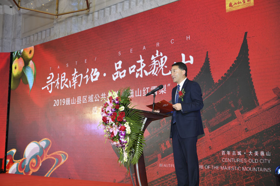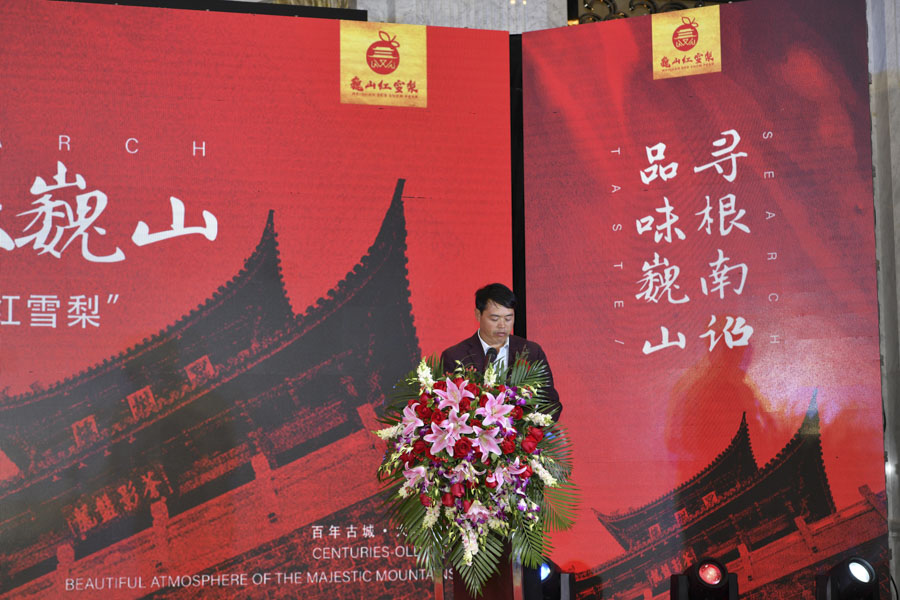 隨后,巍山縣人民政府王利偉縣長、巍山縣農業農村局局長沈看周,巍山縣馬鞍山鄉朝陽合作社陳文波社長分別從巍山紅雪梨的產業政策,種植、生產、加工全過程,歷史沿革及價值等方面,全方位闡述了“巍山紅雪梨”的發展前景及品牌打造的價值和意義。