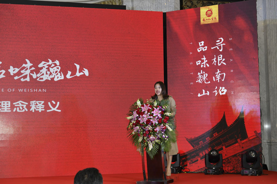 發布會上,云南蔚嵐信息技術有限公司副總周晶晶詳細闡述了區域公共品牌的創作過程,包含了品牌定位、設計理念、設計應用、擬人形象等,并強調了此次發布會以品牌——“尋根南詔·品味巍山”為活動主題的意義。從歷史、產地、種植和品質等四個方面,總結突出了“巍山紅雪梨”的特性,同時,也詮釋了“巍山紅雪梨”的區位優勢、源產地優勢、精細化的科學管理優勢、產品品質優勢以及現有產業扶持政策優勢等,從而體現了品牌價值和品牌發展戰略。