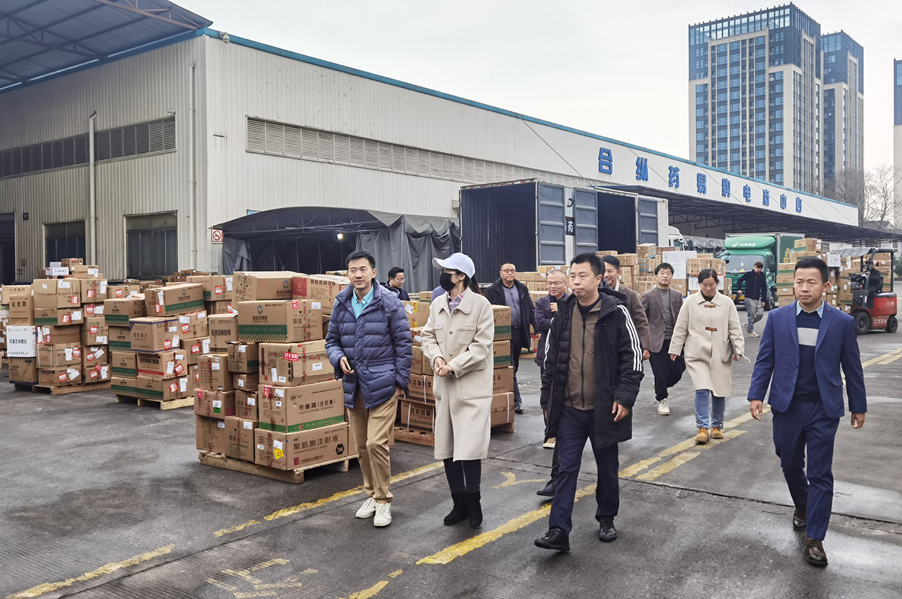 14日下午,考察團到達此次考察交流的第一站,四川合縱藥易購醫藥股份有限公司電商基地,受到了四川合縱藥易購醫藥股份有限公司董事、高級副總裁李宇欣帶領的相關管理團隊的熱情接待。四川合縱藥易購醫藥股份有限公司是中國首家醫藥產業互聯網上市企業,是一家數智醫藥大健康生態型企業。業務涵蓋醫藥新零售、醫藥B2B電商、數字化賦能、醫藥批發、醫藥公共服務、醫藥供應鏈、智能物流、C端矩陣、互聯網醫療、醫藥健康金融、大健康管理等眾多板塊。為全產業鏈合作企業提供優質產品、先進平臺、豐富資源、創新技術與完善服務,助力生態伙伴加速增長與永續發展,共同構建數智醫藥大健康產業鏈新生態。